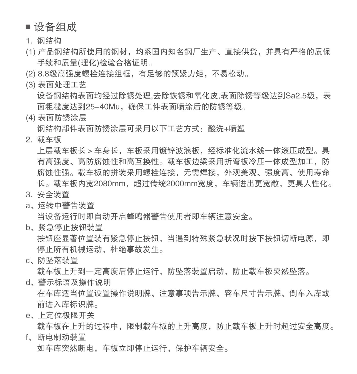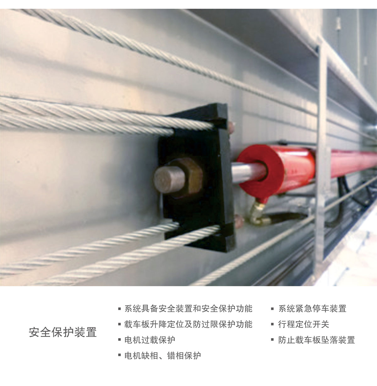 9、安全裝置:防墜裝置、限位保護器、急停開關等。